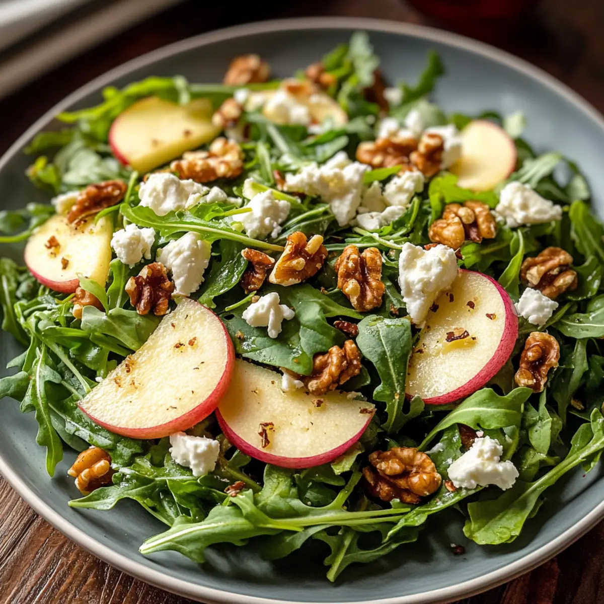 Freshness at Its Peak: This salad showcases vibrant flavors from crisp apples and peppery arugula, making it a refreshing choice for any table.