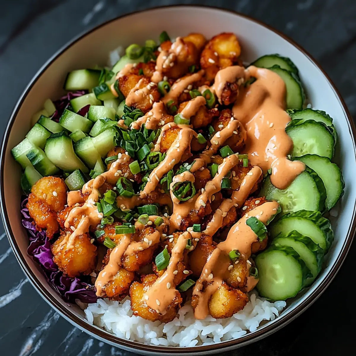 Cucumber Salad: Fresh and crisp, a light cucumber salad adds a refreshing crunch that balances the bowl’s richness.