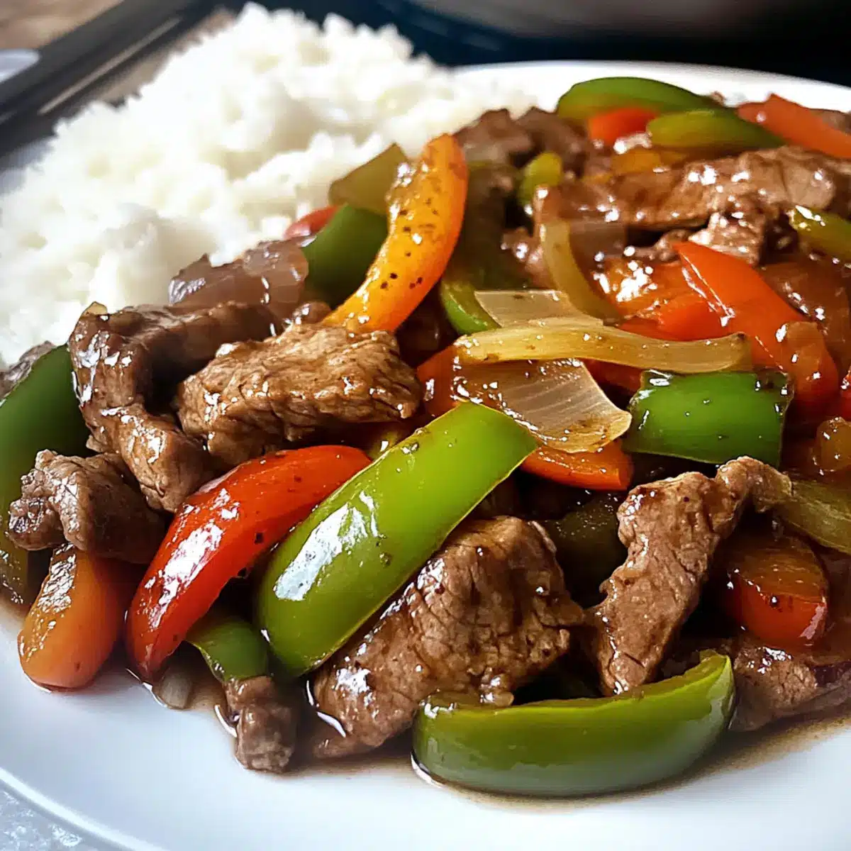 - Serve the pepper steak over rice, enjoying it hot with colorful vegetables and a glossy glaze.