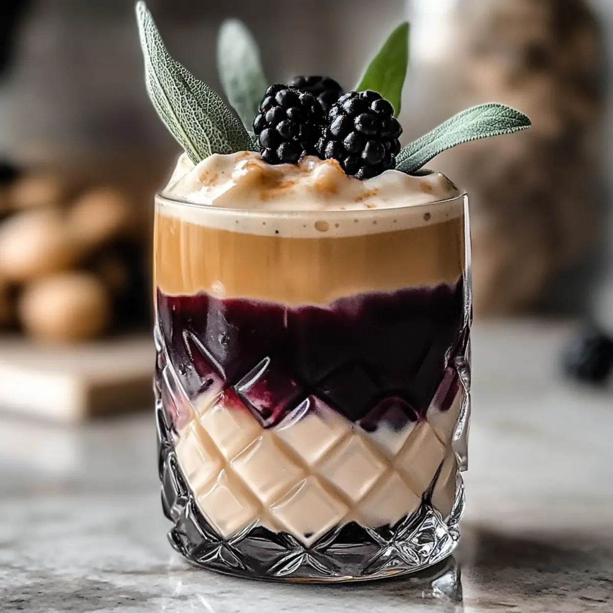 - Spoon the frothy oat milk over each glass and garnish with sage leaves and blackberries.