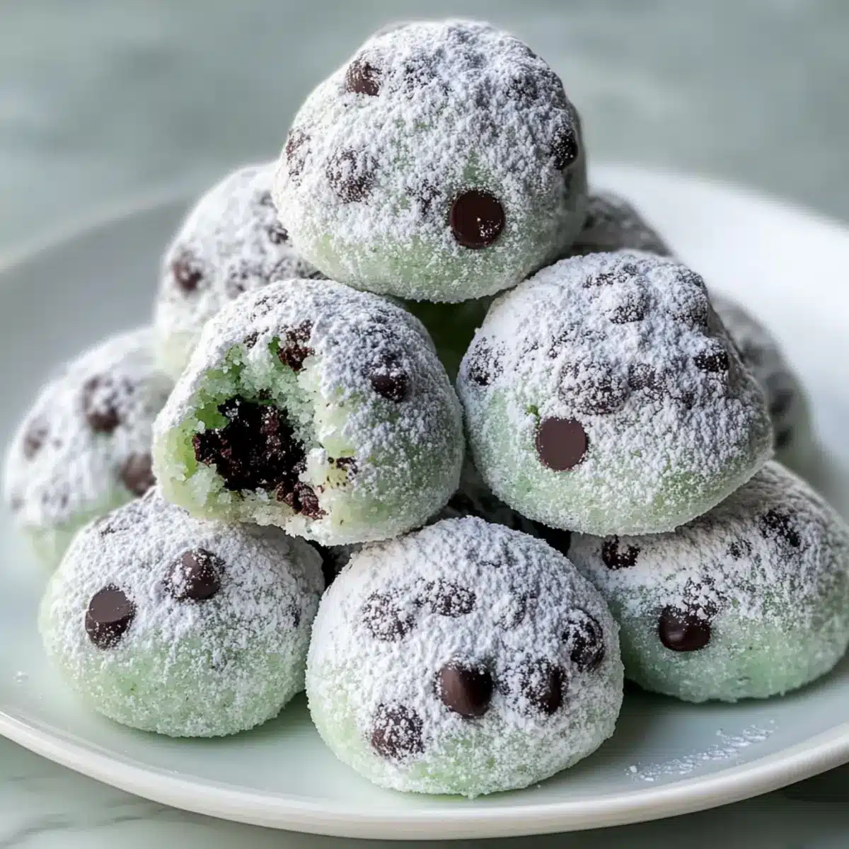 Melt-in-Your-Mouth Mint Chocolate Chip Snowball Cookies