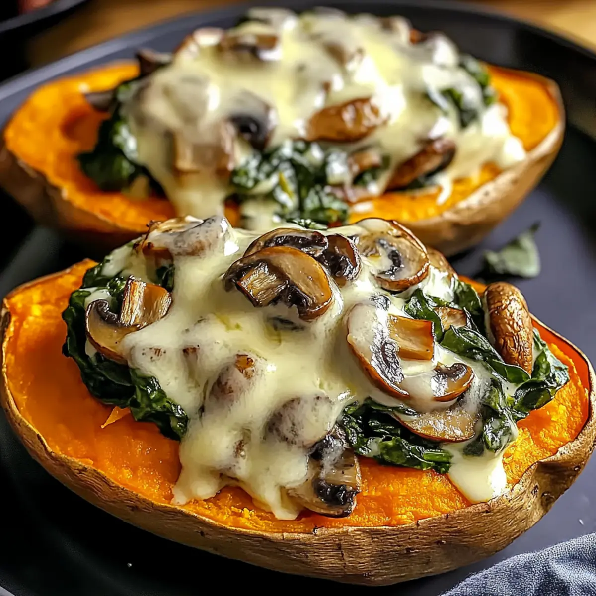 Creamy Mushroom and Spinach Stuffed Sweet Potatoes Bliss
