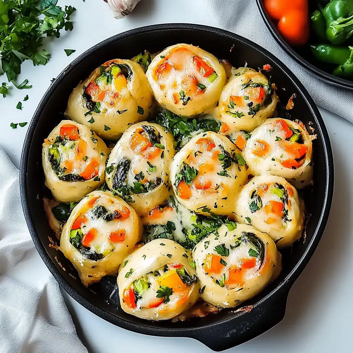 Comforting, these rolls are the ultimate cozy treat that will remind you of home-cooked goodness. Versatile, use whatever veggies you have on hand, from spinach to mushrooms, making it a great way to tackle leftovers. Cheesy Delight, the melty mozzarella and cream cheese filling create indulgent bites that everyone loves. Easy to Make, whip these up in around 30 minutes, making them perfect for busy weeknights or impromptu gatherings. Pair them with a crisp salad or a tangy dip, and you’ll have a meal that’s not just delicious but also visually appealing—perfect for family and friends alike!
