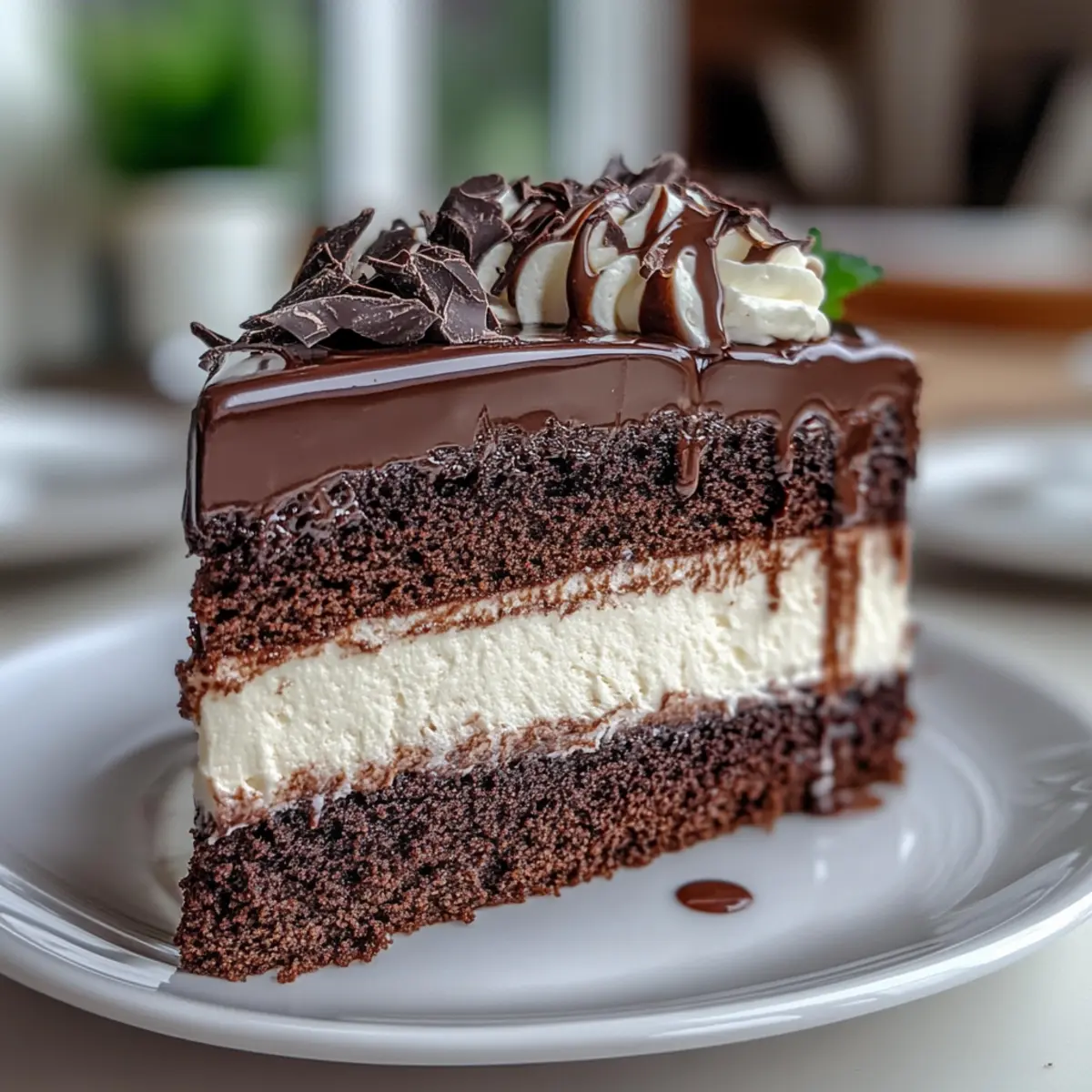Once chilled, pour the prepared ganache evenly over the top, allowing it to cascade gracefully down the sides of the cake. For an elegant touch, decorate the top with swirls of leftover mousse or chocolate shavings, if desired. Refrigerate the completed Chocolate Tuxedo Cake for a minimum of 2 hours before serving to ensure everything is set. This stunning dessert will steal the show at any gathering!