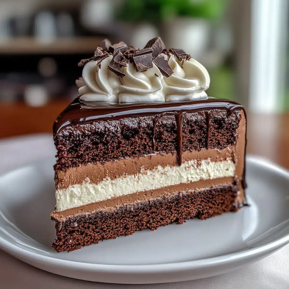 Whipped Cream: Light and airy whipped cream adds a cloud-like texture, balancing the dense layers of mousse beautifully and making each slice irresistible.