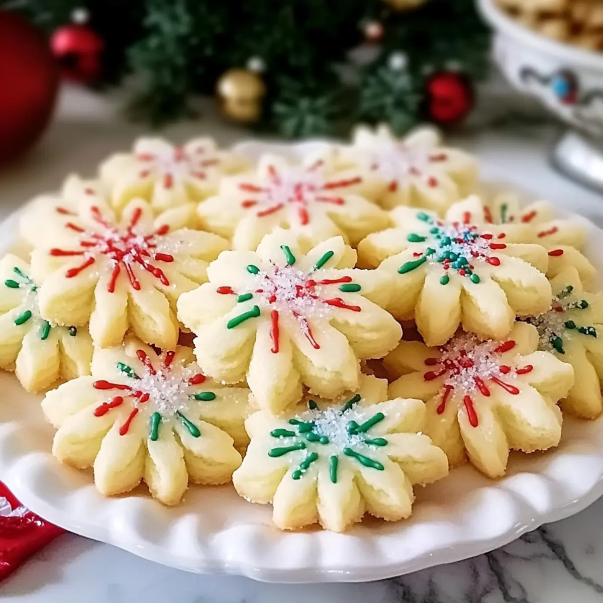 Decorating Tips: For colorful cookies, decorate before baking. Sprinkles stick better while the dough is fresh, giving your Classic Buttery Spritz Cookies a festive flair.