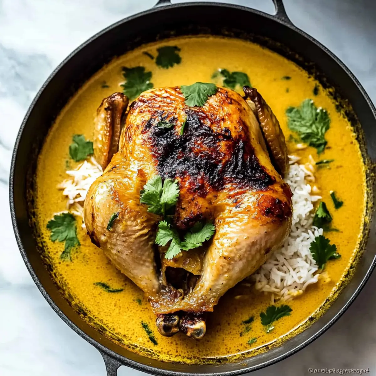 Once the braising time is complete, remove the pot from the oven and allow the chicken to rest for about 10 minutes. This brief resting period helps retain moisture. Finally, carve the chicken and serve it generously with the luscious coconut sauce drizzled over fluffy jasmine or coconut rice, creating a perfectly comforting dish ready to impress.