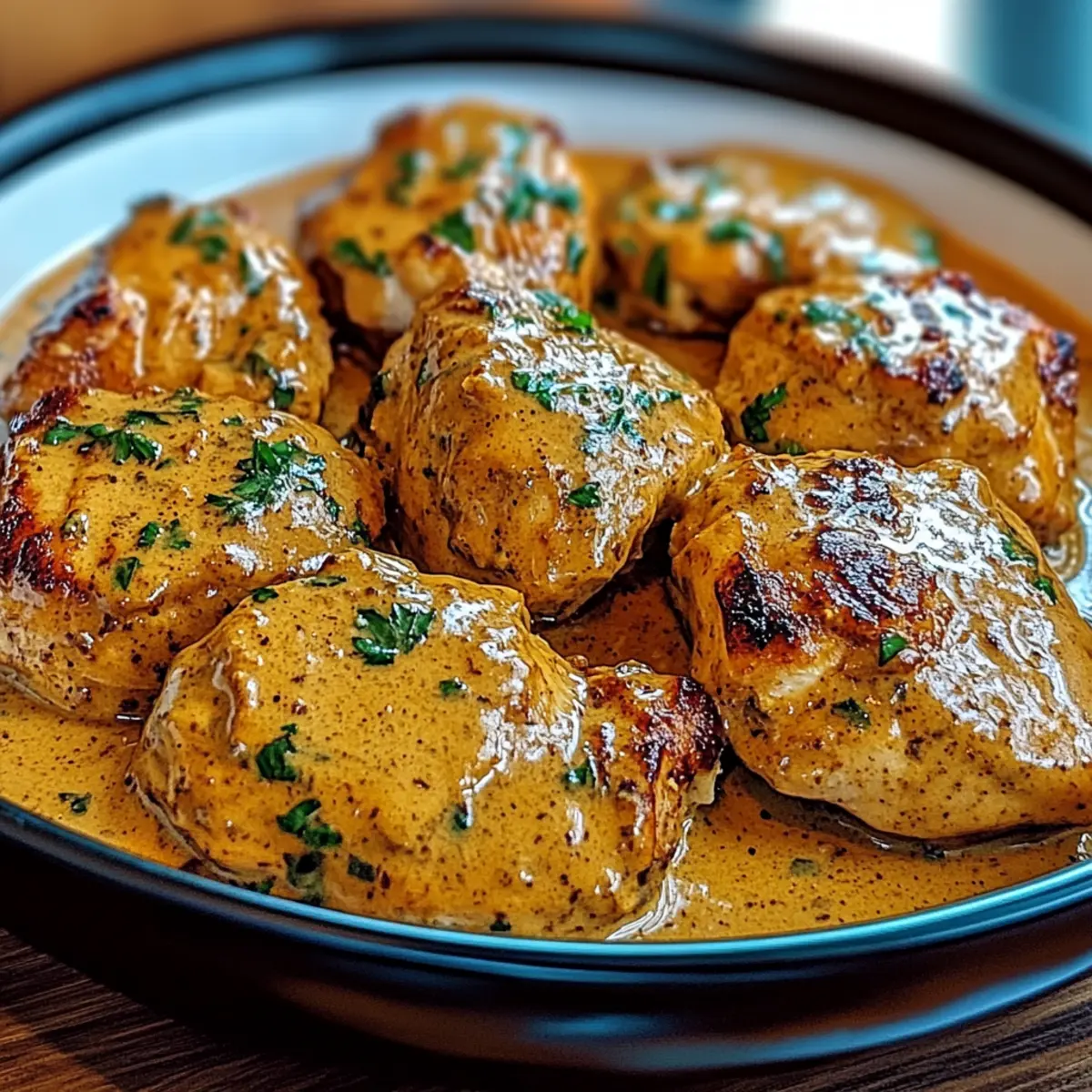 Reheating: When ready to enjoy, reheat the chicken on the stovetop over low heat, stirring occasionally to evenly warm the creamy sauce without separating.