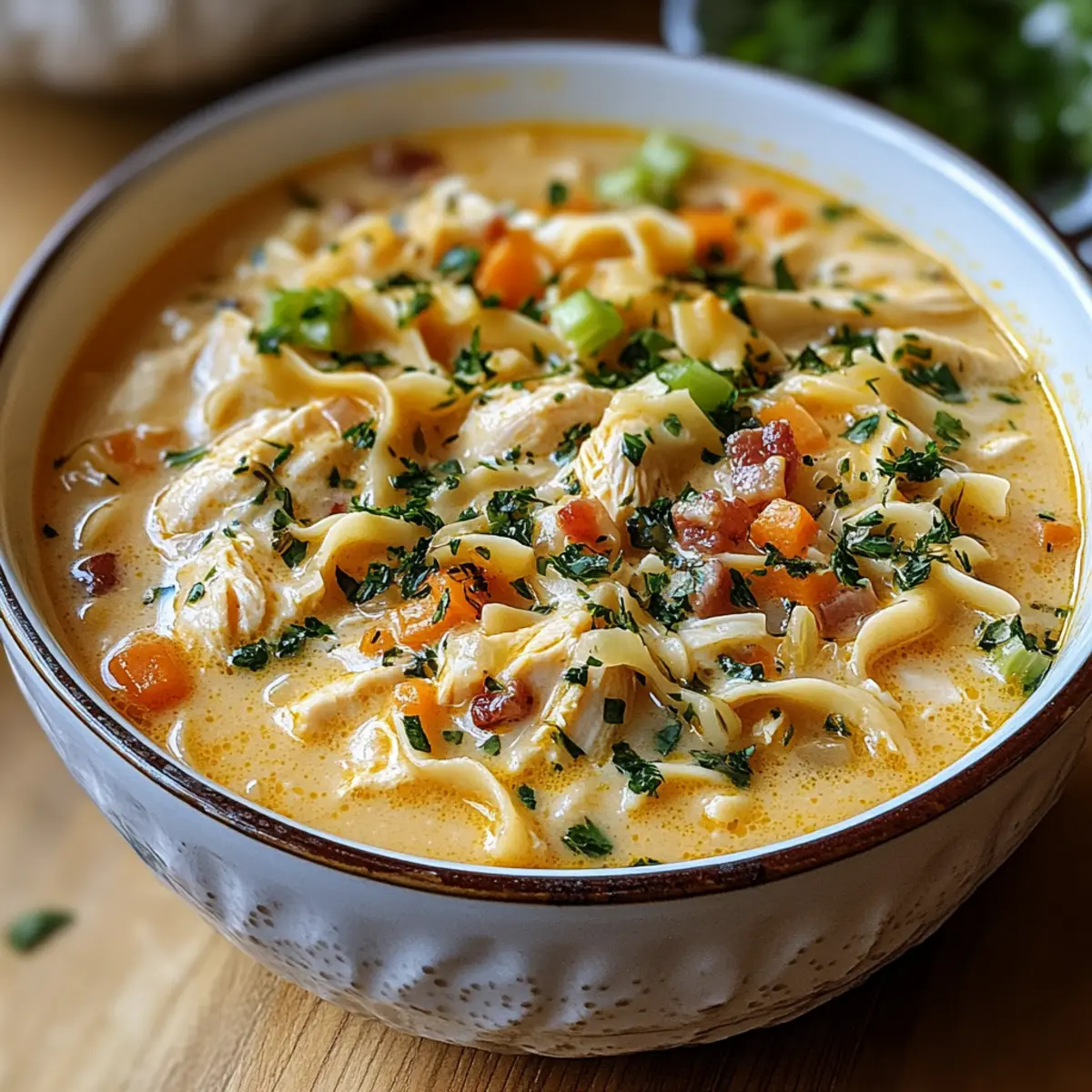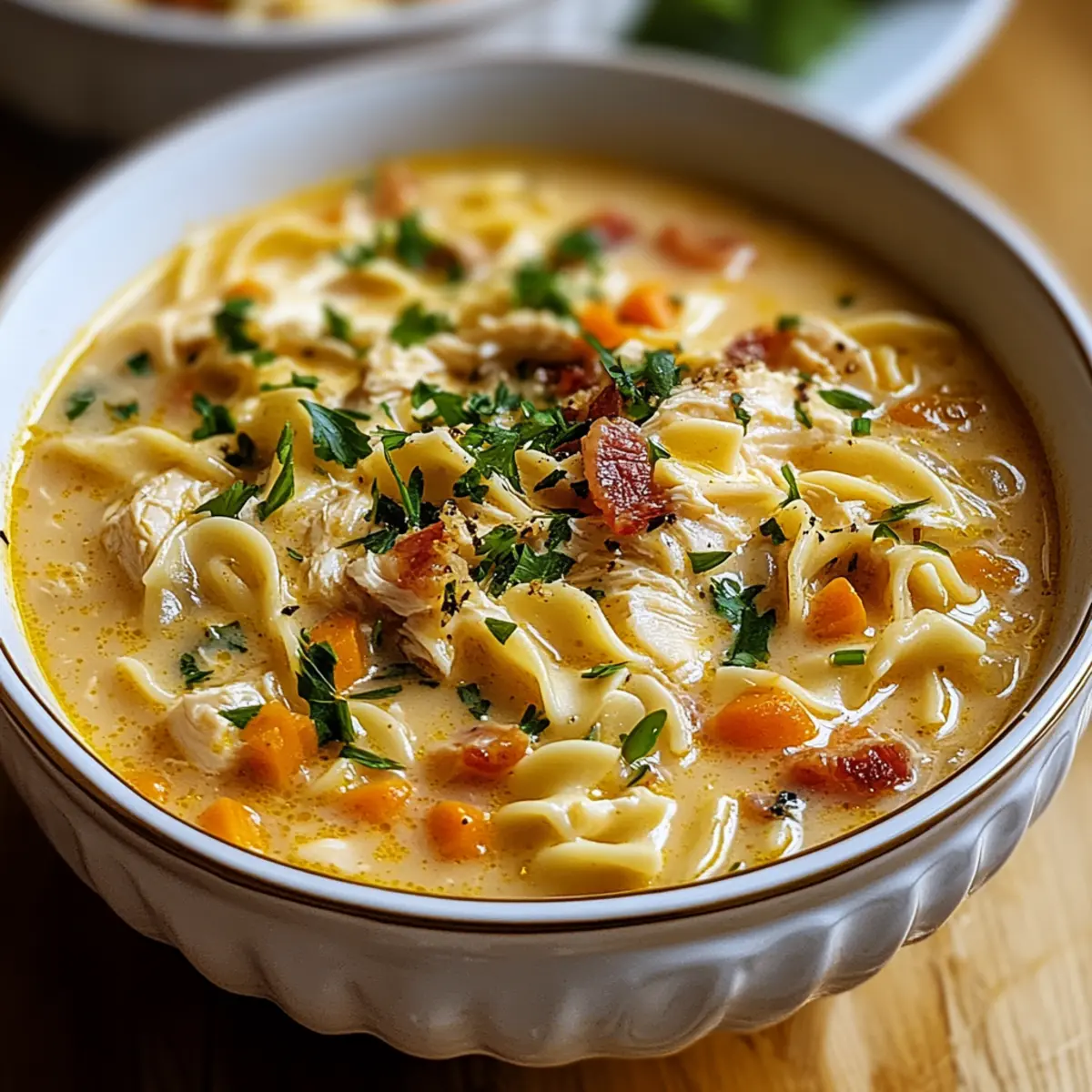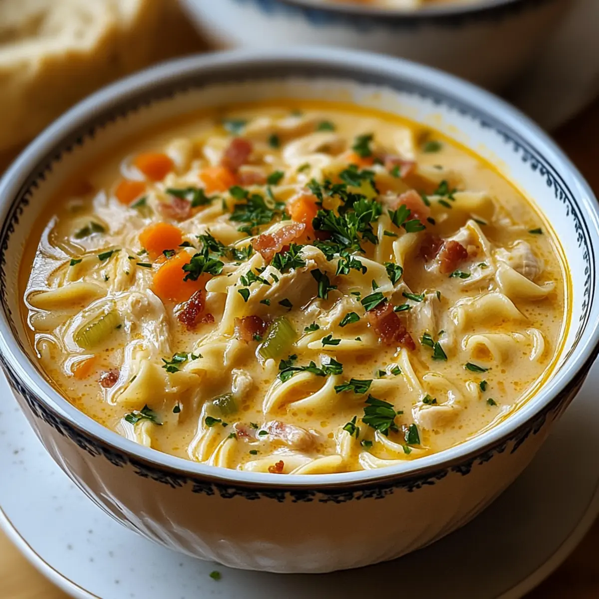 Creamy Richness: The blend of cream cheese and heavy cream creates a velvety texture that elevates the classic chicken noodle experience.