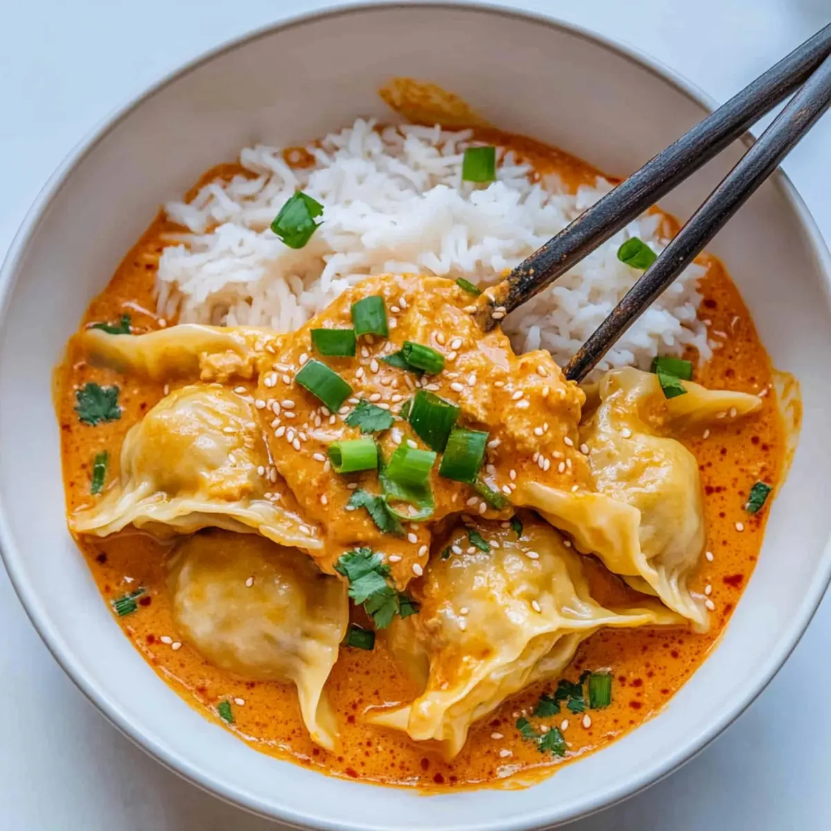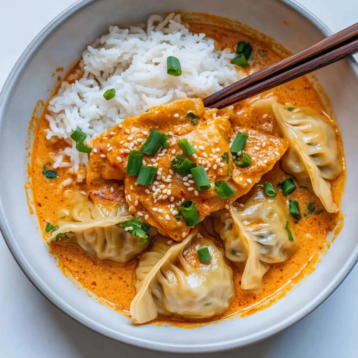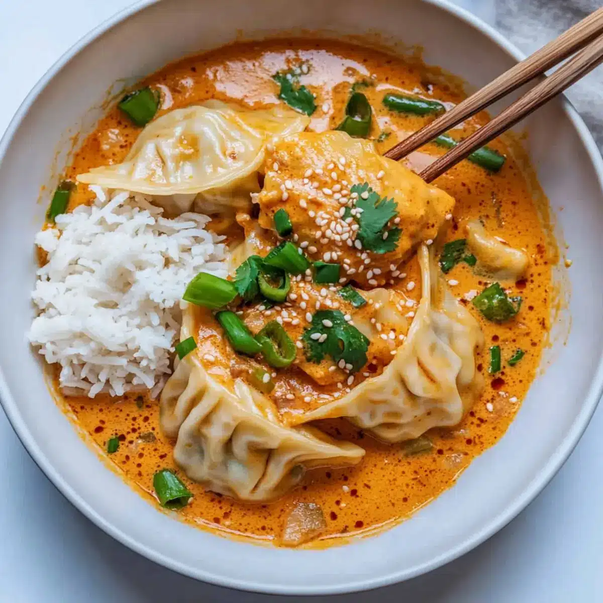 Flavor Explosion: The creamy red curry broth infuses the dumplings with a rich, savory taste that warms the soul and tantalizes the taste buds.