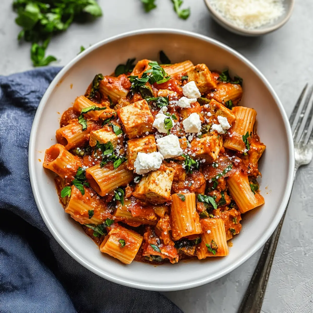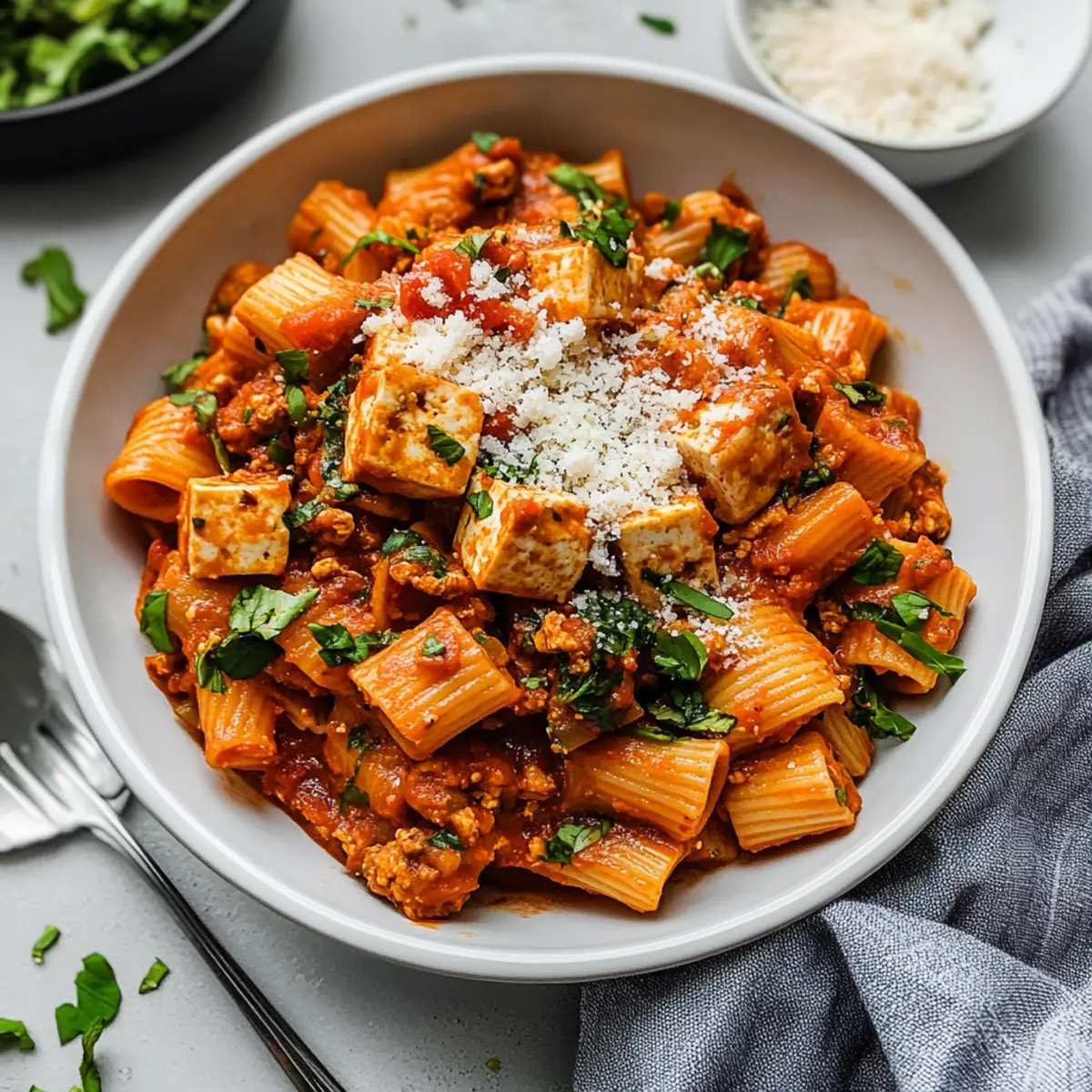 Cheesy Touch: Sprinkle nutritional yeast or your favorite dairy-free cheese on top before serving for a cheesy flavor without the dairy. This simple addition will give your Easy Tofu Tomato Pasta an extra layer of richness.