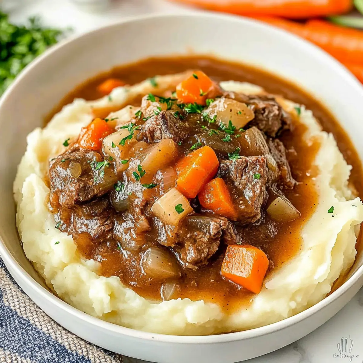 As the leaves start to swirl in a dance of red and gold, my kitchen fills with the enticing aroma of simmering apple cider and savory beef. Enter the Cozy Fall Apple Cider Stew Mash—a comforting dish that captures the warmth of autumn in every bite. Tender sirloin cubes, sweet onions, and vibrant carrots meld together in a delightful embrace of flavors, all nestled atop creamy, cheesy mashed potatoes. The best part? This hearty stew is not only a crowd-pleaser, but it also whips up quickly, making it perfect for weeknight dinners or cozy gatherings with friends. Ready to bring the essence of fall to your table? Let’s dive into this delicious recipe that promises to be a warm hug in a bowl!
