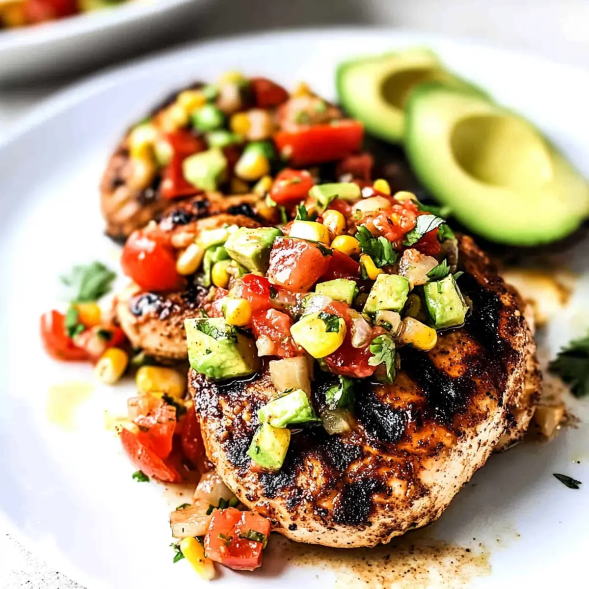 To serve your Fiesta Lime Chicken, slice each breast into strips and plate them beautifully topped with a generous helping of avocado corn salsa. For an added touch, serve alongside cilantro lime rice or black beans for a complete meal. The contrasting textures of juicy chicken and creamy salsa will make your meal a delightful feast!