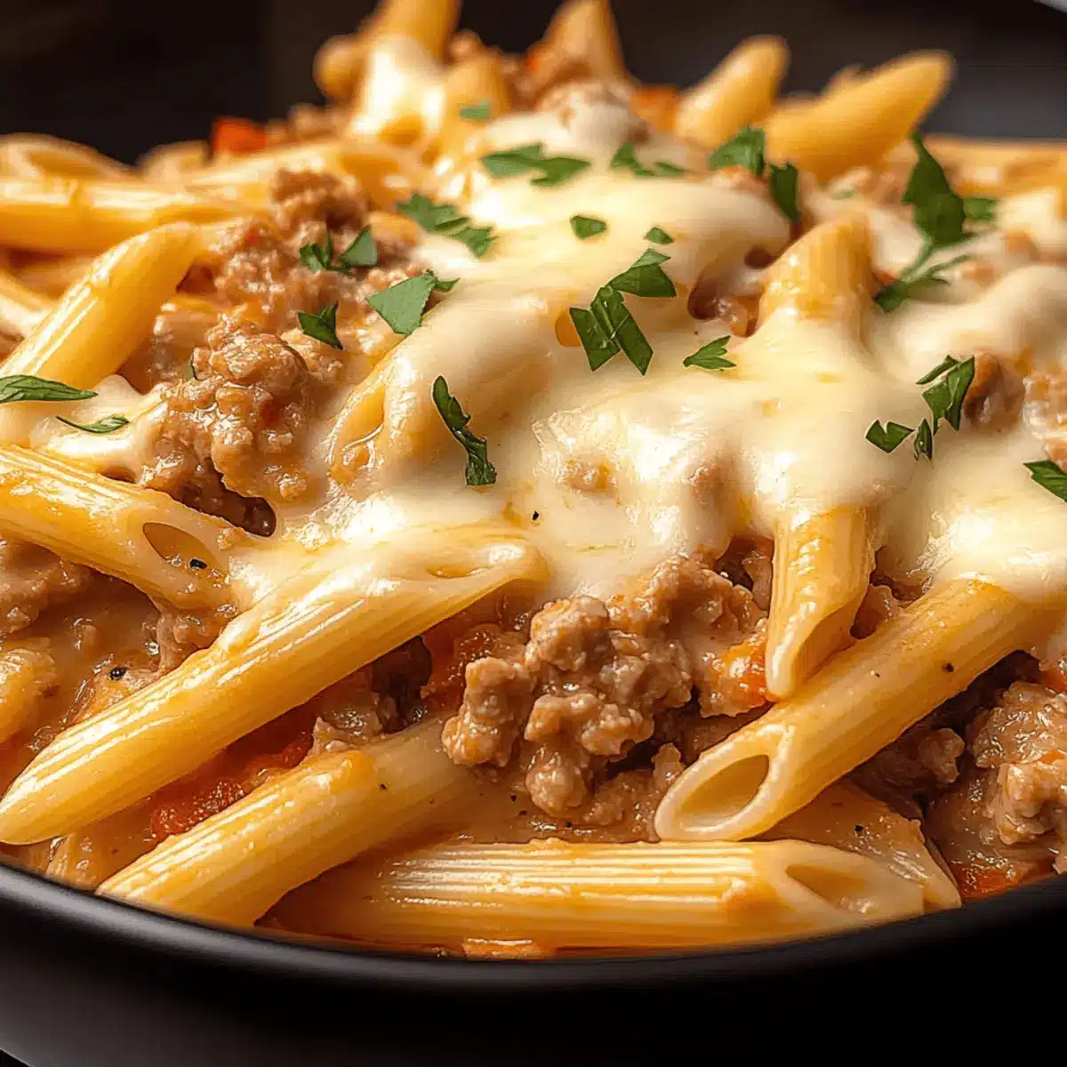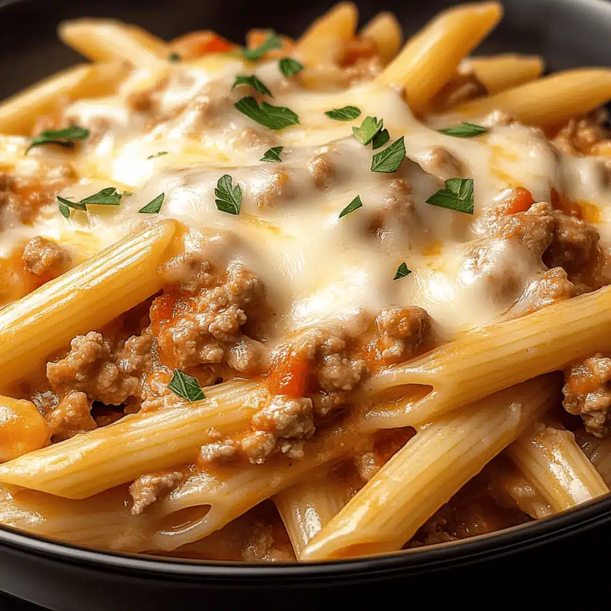 Once the cheese is bubbly and melted, remove the skillet from heat. Garnish your Ground Turkey Pasta with freshly chopped parsley and a sprinkle of red chili flakes for an added kick, if desired. Plate the creamy pasta and serve it warm, allowing everyone to savor the comforting flavors of this delightful dish.