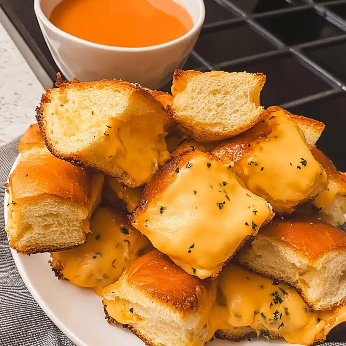 Tomato Soup: A classic pairing, its rich, tangy flavor complements the cheesy goodness of the sliders perfectly, creating a comforting dip.