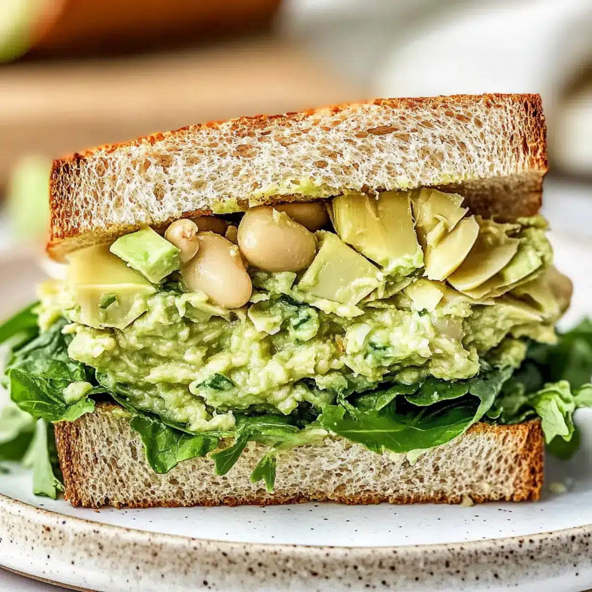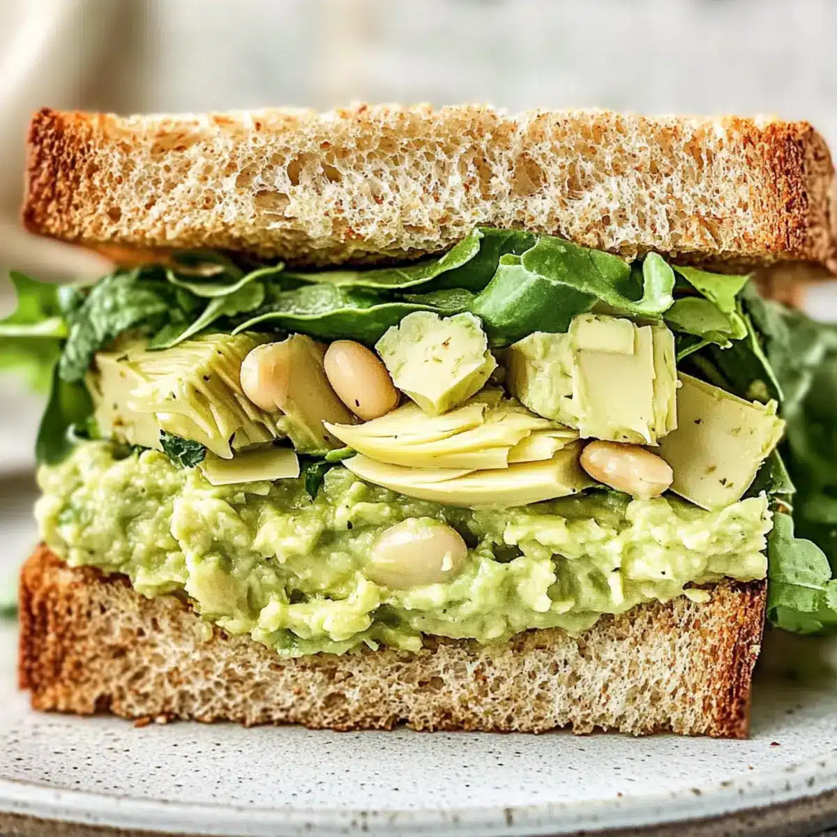 Take two slices of whole grain bread and spread your favorite mustard on one side of each slice. Layer a handful of fresh greens (like spinach or arugula) on one side, followed by a generous scoop of the white bean and avocado mixture. Top it with sliced cucumbers or additional artichoke hearts for an extra crunch before placing the other slice of bread on top.