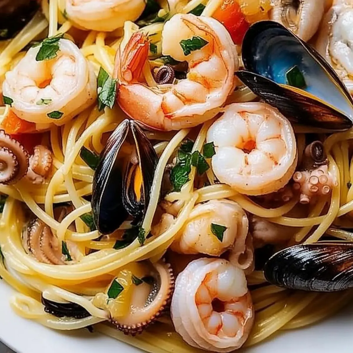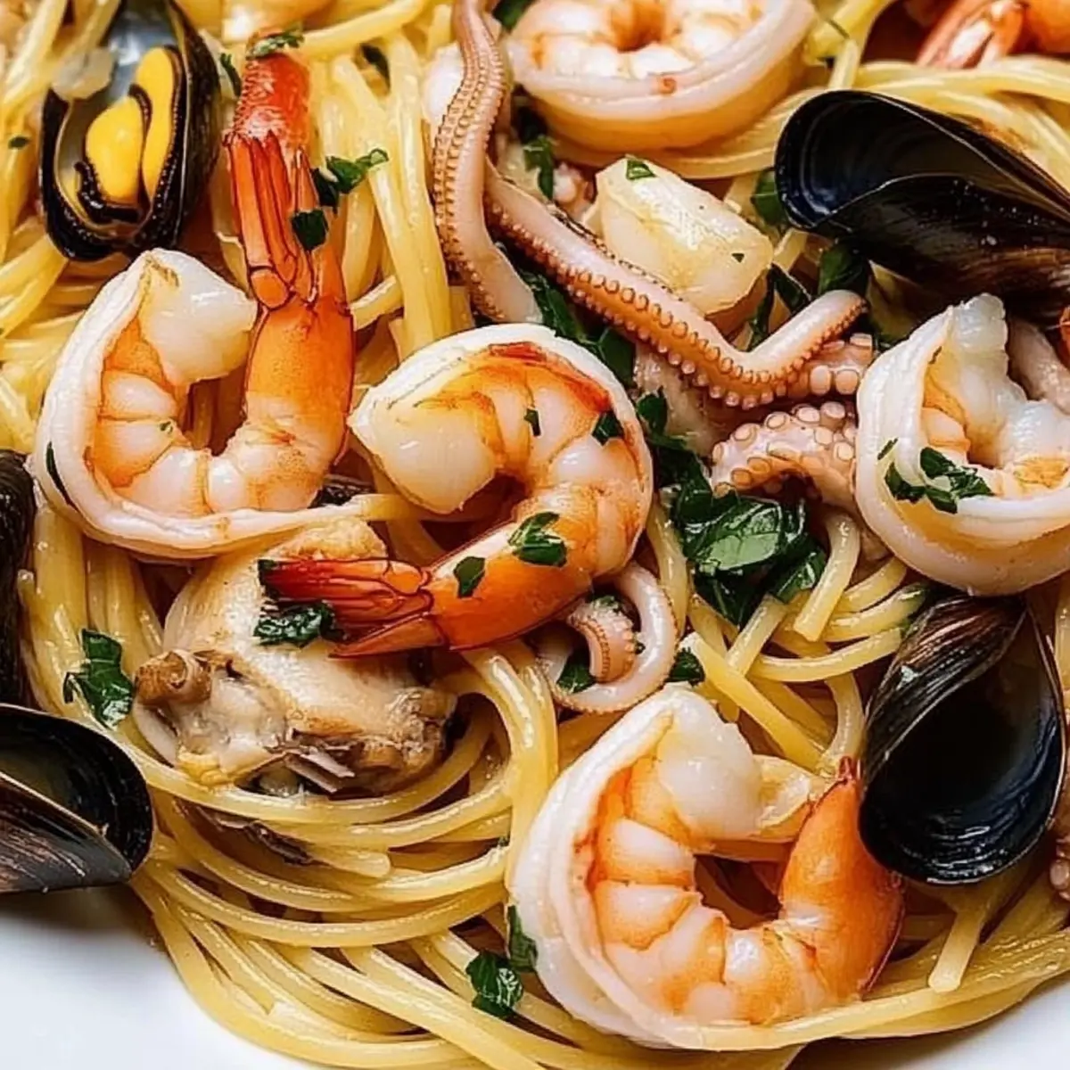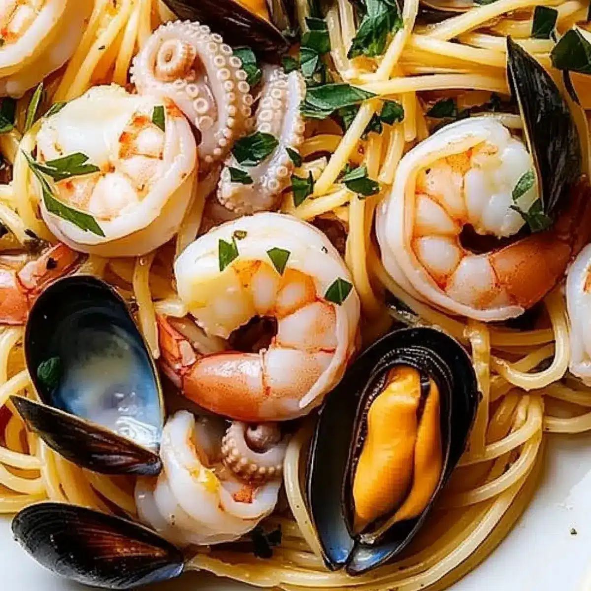 As I stood in my kitchen, the aroma of garlic sizzling in olive oil filled the air, making my mouth water in anticipation. This is when I knew it was time to create something special: Italian Seafood Spaghetti. Combining succulent shrimp, tender octopus, and fresh mussels, this delightful dish effortlessly brings a taste of the Italian coast to your table. The best part? It’s quick to prepare, making it perfect for those busy weeknights, yet it has the flair to impress at any gathering. With flavors so vibrant and fresh, you’ll find yourself indulging in a seafood lover’s dream. So, whether you’re planning an intimate dinner or simply craving a comforting bowl of pasta, this recipe is sure to become a favorite in your kitchen. What seafood treasure awaits in your pantry to elevate this dish even further?