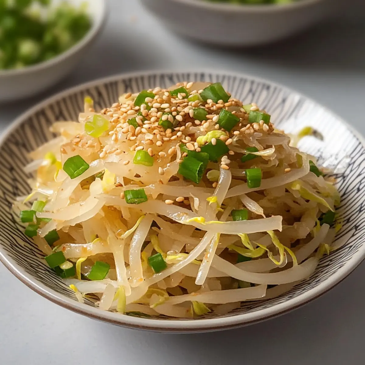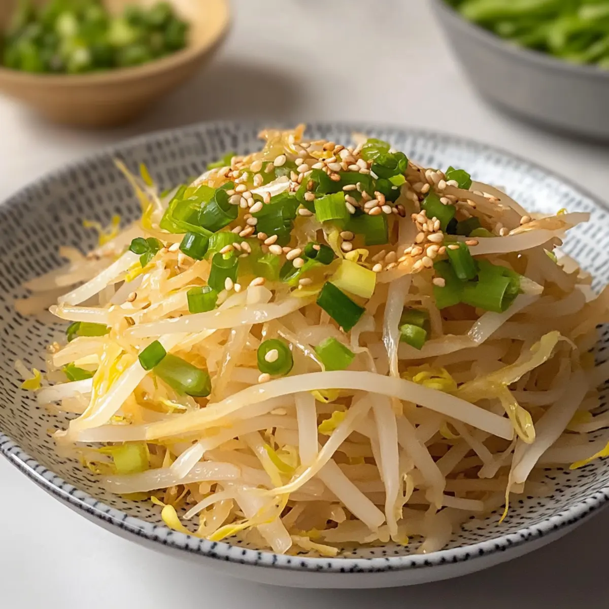 • Bean Sprouts – Fresh soybean sprouts provide that delightful crunch and are essential for your Korean Bean Sprout Salad.
