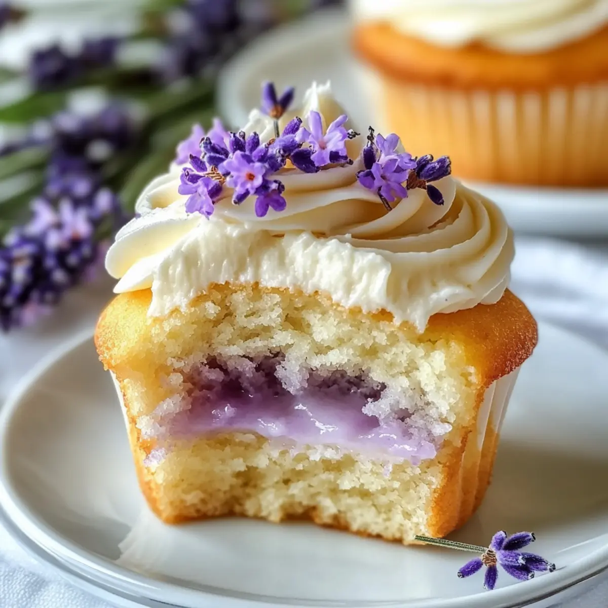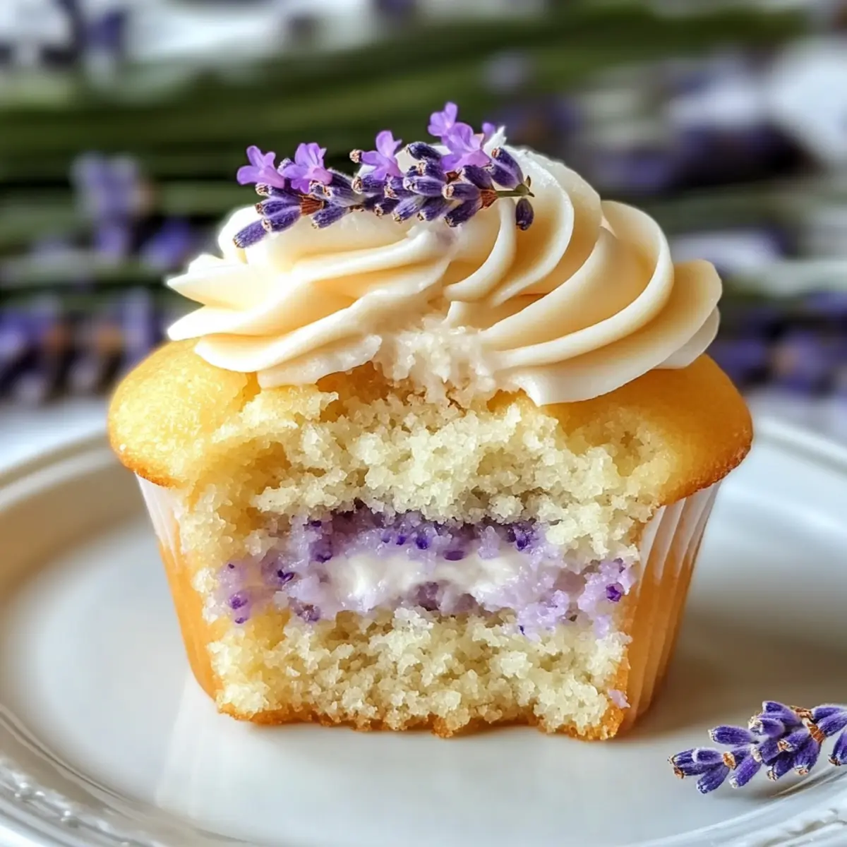 - Frost each cupcake using a piping bag and garnish with a sprinkle of dried lavender.