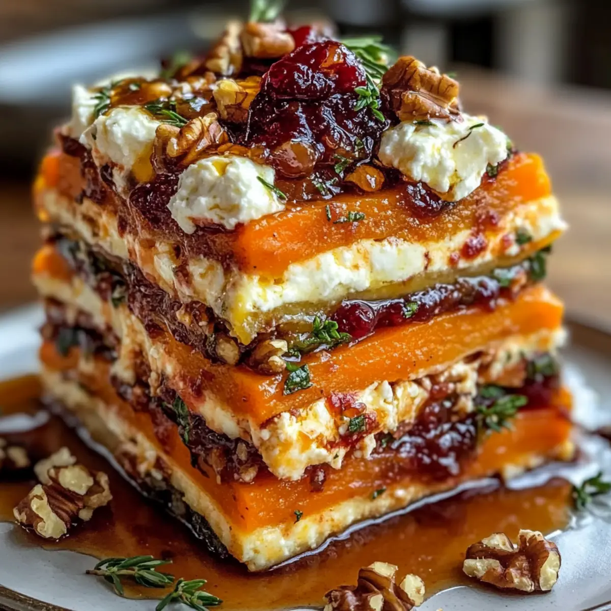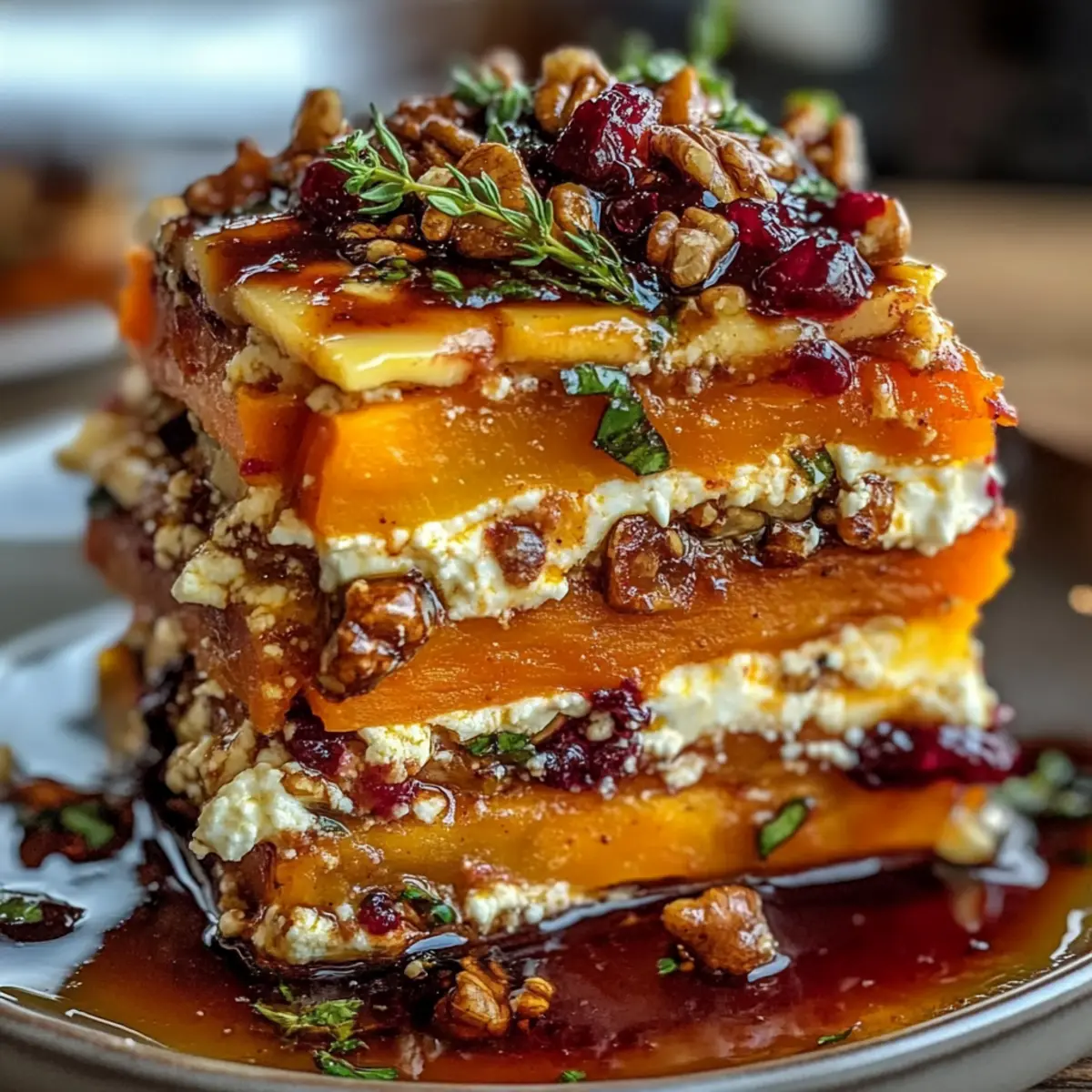 As the sun dips below the horizon, the kitchen fills with the warm, inviting aroma of roasted vegetables. Today, I’m excited to share my delightful Layered Sweet Potato, Butternut Squash, and Carrot Lasagna with Feta, Walnuts, and a Cranberry-Honey Glaze. This vegetarian masterpiece not only transforms everyday root vegetables into a visually stunning dish, but it also brings a comforting warmth that makes it perfect for gatherings with friends and family. The best part? It’s a crowd-pleaser that’s easy to prepare and offers a myriad of ingredient swaps, allowing you to get creative while using the best of seasonal produce. Ready to impress your loved ones with a dish that looks as good as it tastes? Let’s dive into this culinary adventure!
