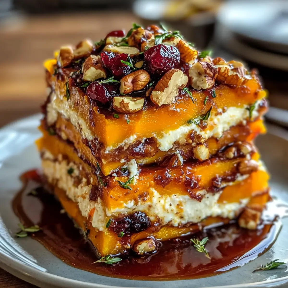 Glaze Drizzle: Drizzle the cranberry-honey glaze generously, but avoid drowning the layers to keep the structural integrity of the delicious lasagna.