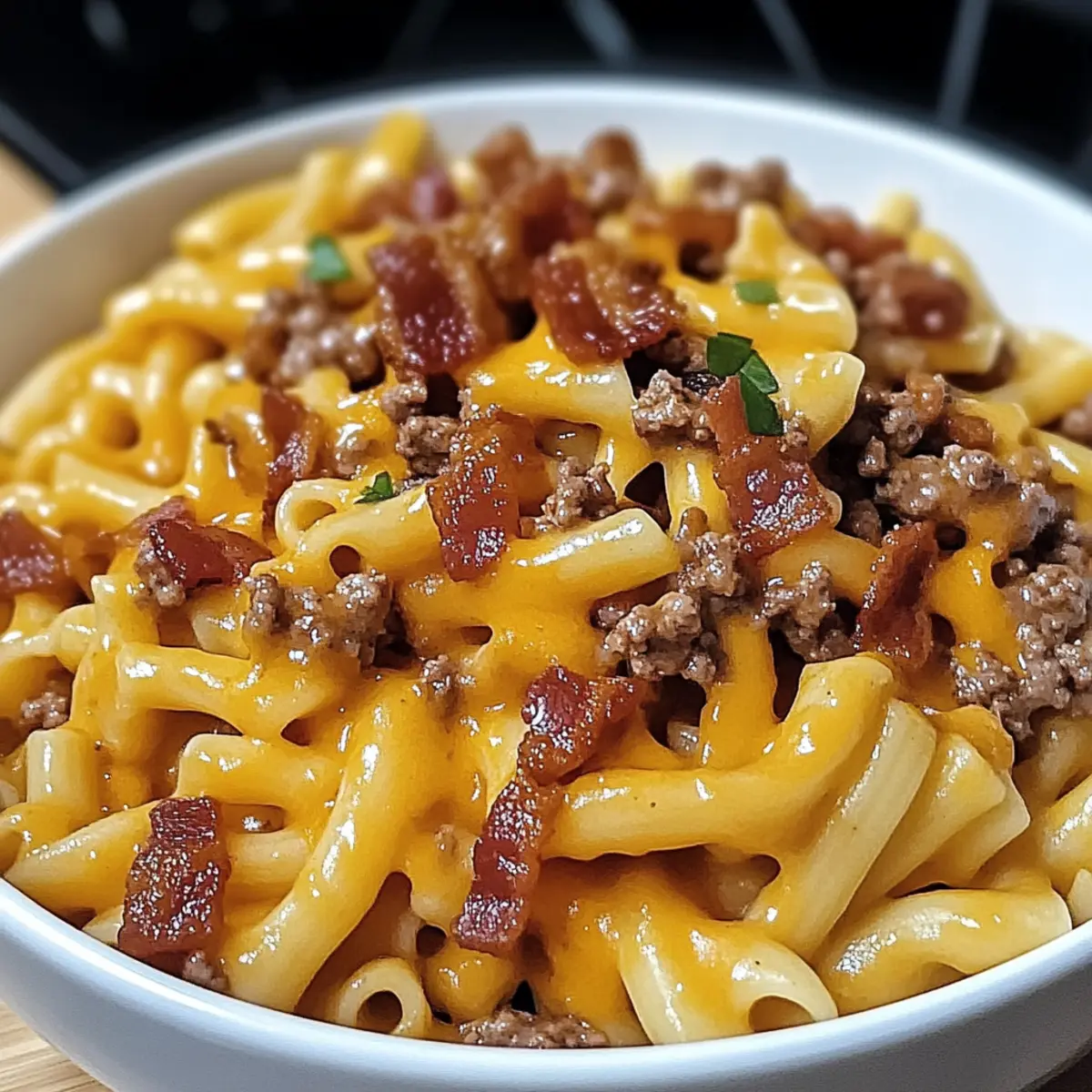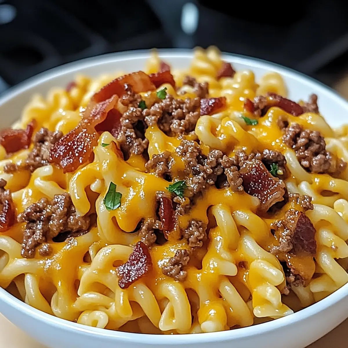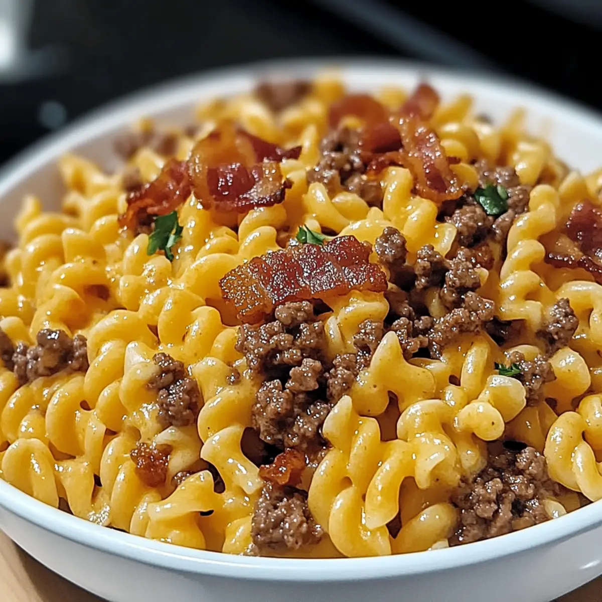- Serve the Loaded Bacon Cheeseburger Pasta hot, garnished with additional crispy bacon or fresh parsley.