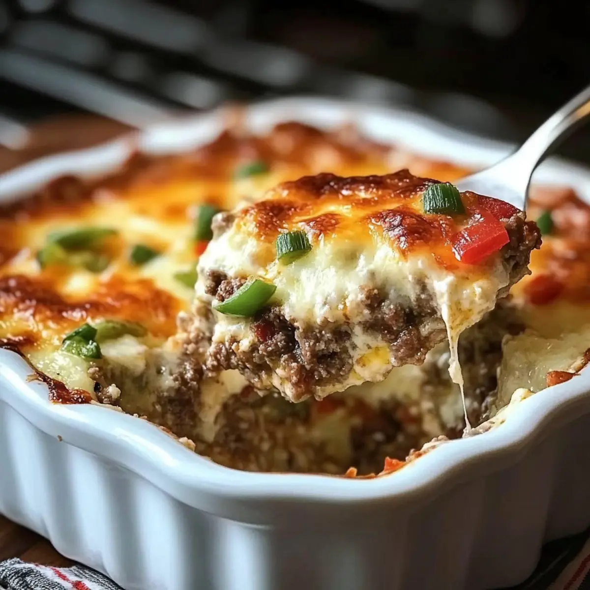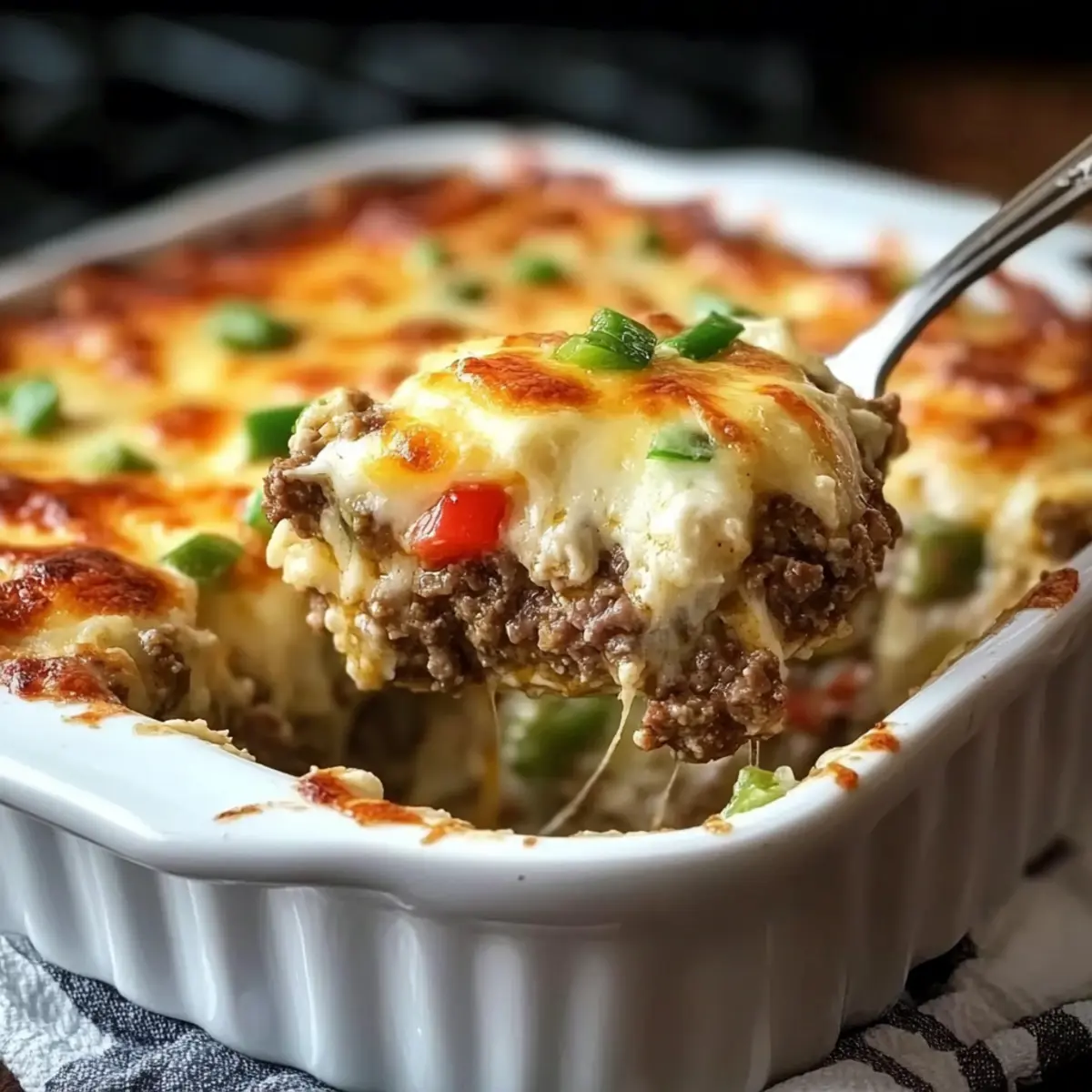 These Low Carb Philly Cheesesteak Casserole ingredients are perfect for meal prep enthusiasts! You can prepare the ground beef, sautéed vegetables, and creamy mixture up to 24 hours in advance. Simply cook everything up to the point of assembling, let it cool, and store it in an airtight container in the refrigerator to keep flavors fresh. When you’re ready to enjoy, just spread the mixture in your baking dish, top it with provolone and mozzarella, and bake as directed. This way, you can enjoy a comforting, homemade meal on busy weeknights with minimal effort and just as delicious results!