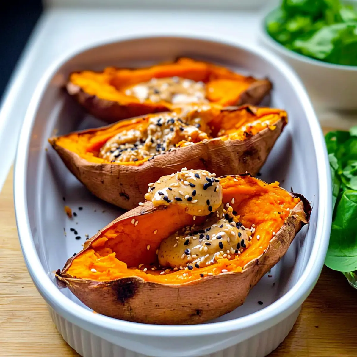 What a great question! To refresh the flavors of your Miso Sweet Potatoes when reheating, add a bit of miso butter on top before placing them in the oven or microwave. This enhances their taste, making them just as delightful as when freshly baked.