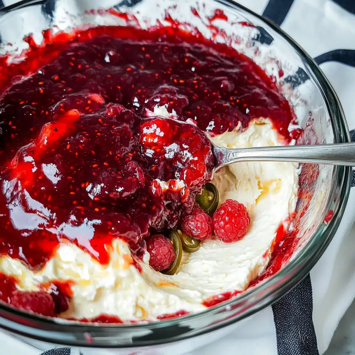 Freezing: For longer storage, freeze the dip without the raspberry jam for up to 2 months. Thaw in the fridge overnight before serving.