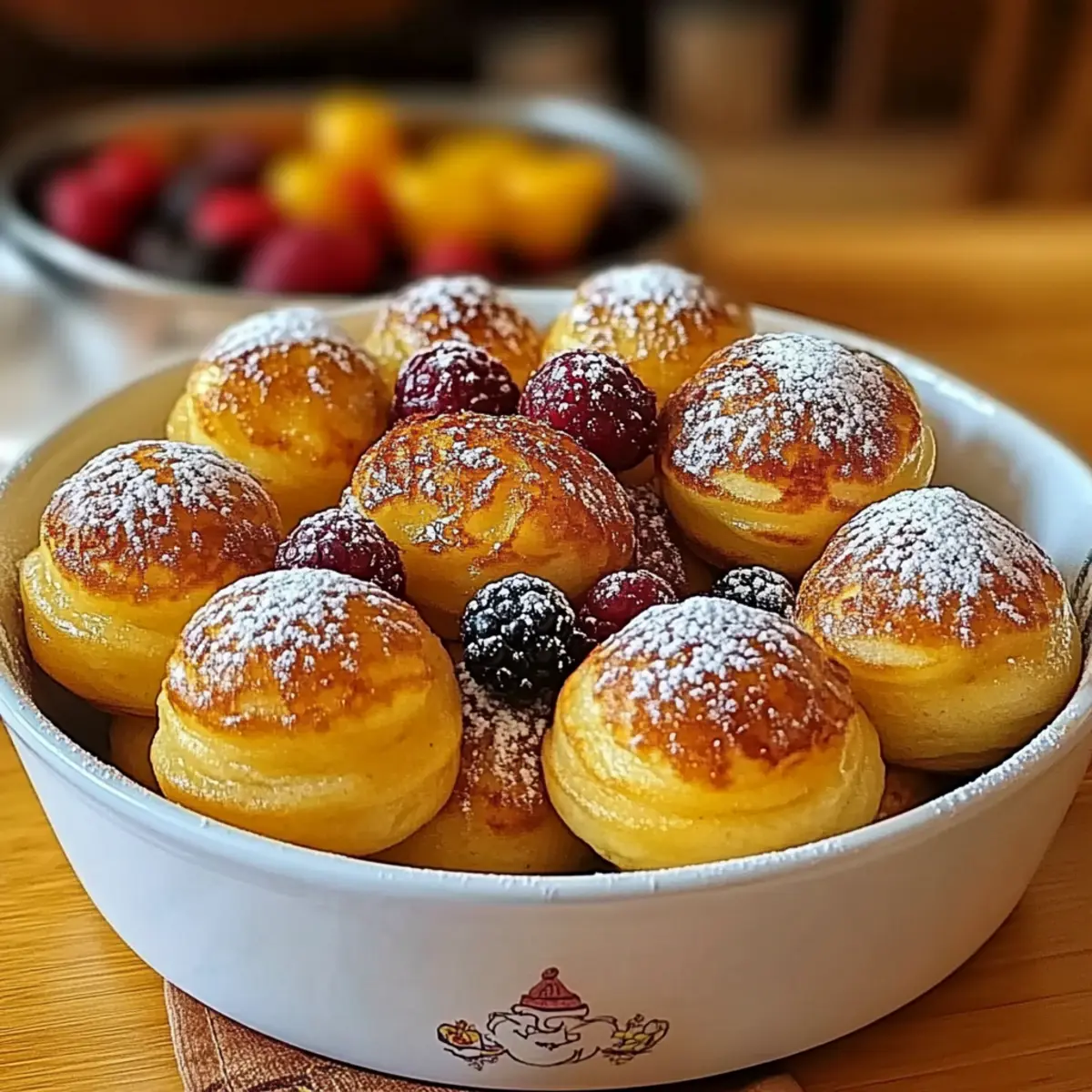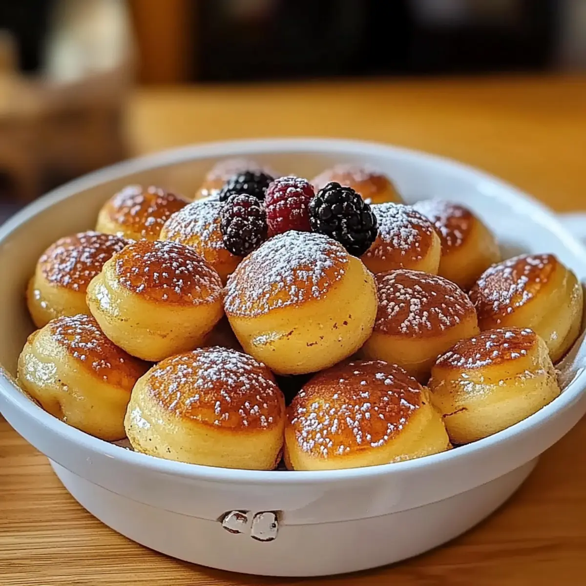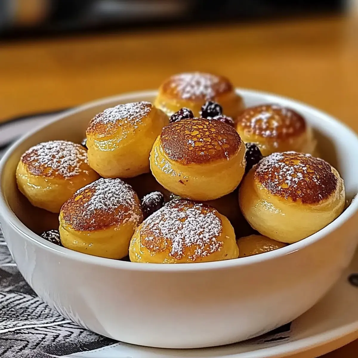Once baked, remove the mini muffin tin from the oven and allow the poppers to cool for a few minutes. Carefully take them out with a spoon or mini spatula and place them on a cooling rack. Serve warm, dusted with powdered sugar or drizzled with maple syrup for that extra touch of sweetness!