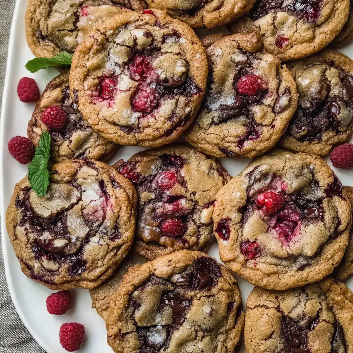 Stepping into my kitchen one rainy afternoon, I stumbled upon a delightful mixture of ingredients that ignited my imagination: plump frozen raspberries and velvety dark chocolate. This moment sparked the creation of my no-chill Raspberry Chocolate Chip Cookies, a perfect marriage of tangy fruit and rich chocolate. With a texture that’s both soft and chewy, these cookies are a dream come true for anyone wishing to indulge in homemade goodness without the wait. The beauty of this recipe lies not just in its amazing taste but also in the quick prep time, allowing you to whip up a batch in no time. Whether you’re treating yourself after a long day or surprising friends with a homemade gift, these cookies will surely be a hit. Ready to elevate your baking game with these deliciously simple delights? Let’s dive into the recipe!