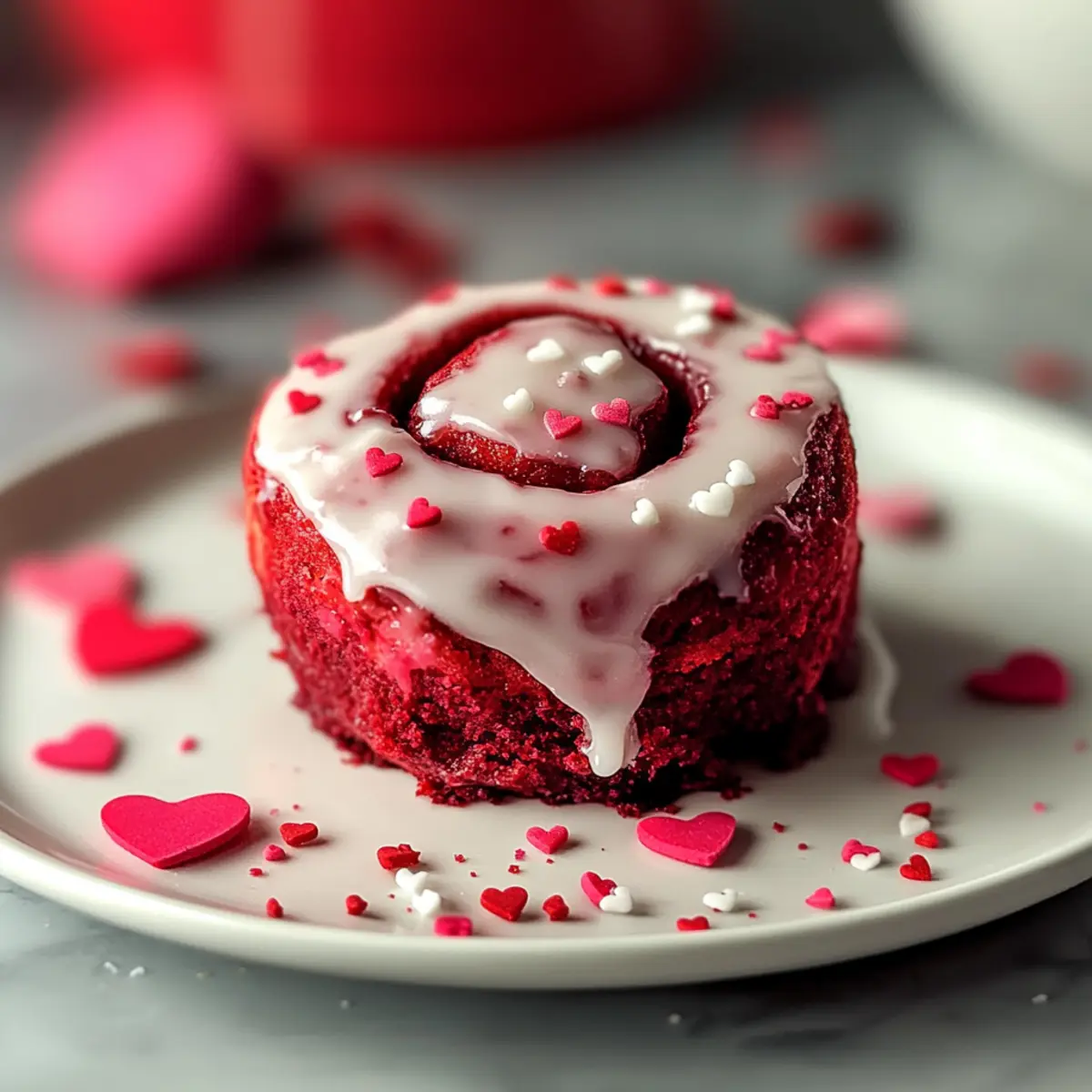 Once the rolls are out of the oven, allow them to cool for about 5 minutes before drizzling the creamy vanilla glaze over the warm rolls. Add delightful heart sprinkles on top for a festive touch. Serve warm, and savor the love-filled flavors of your Red Velvet Valentine’s Day Cinnamon Rolls!