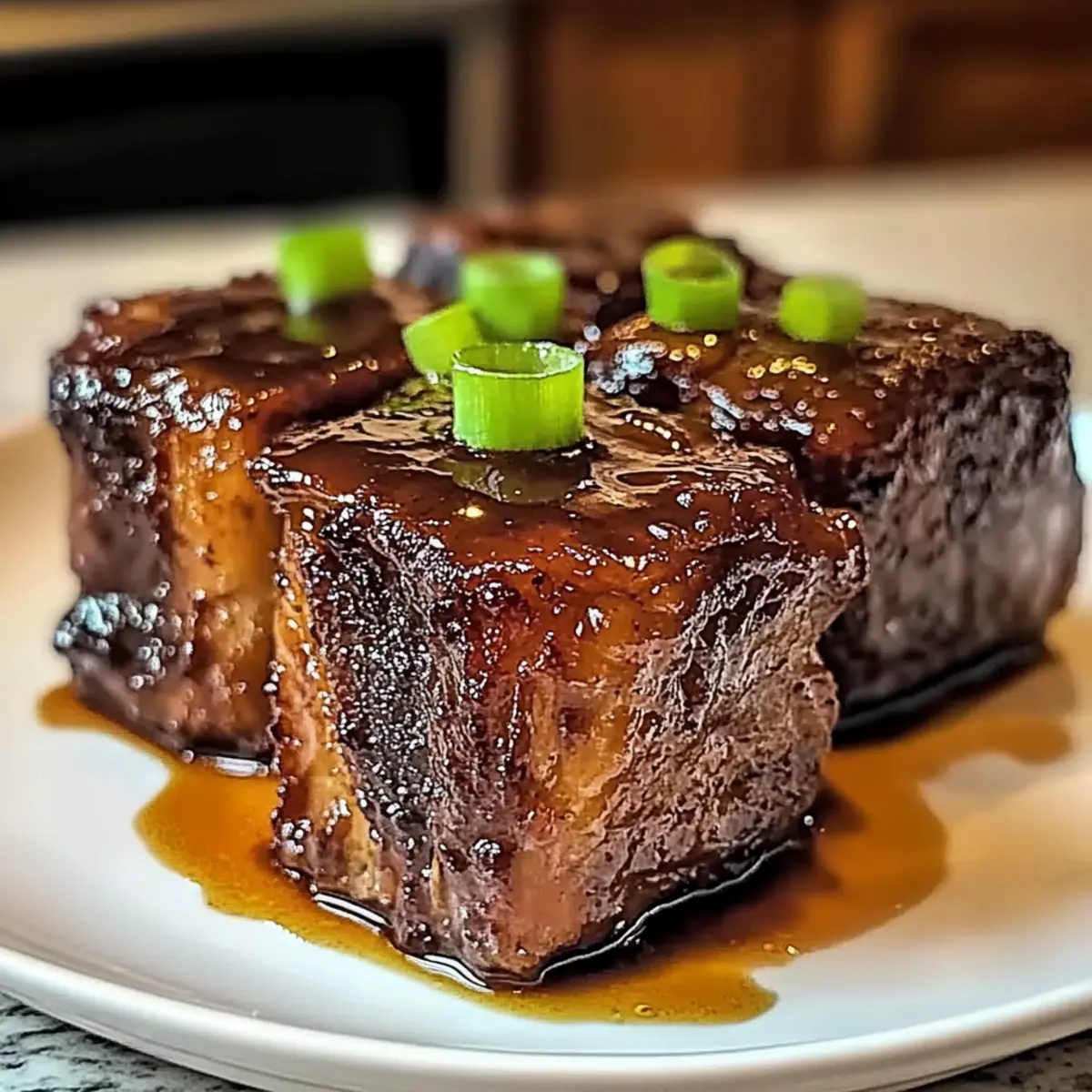 - Serve the short ribs over jasmine rice or noodles, drizzling with glaze and garnishing with green onions or sesame seeds.