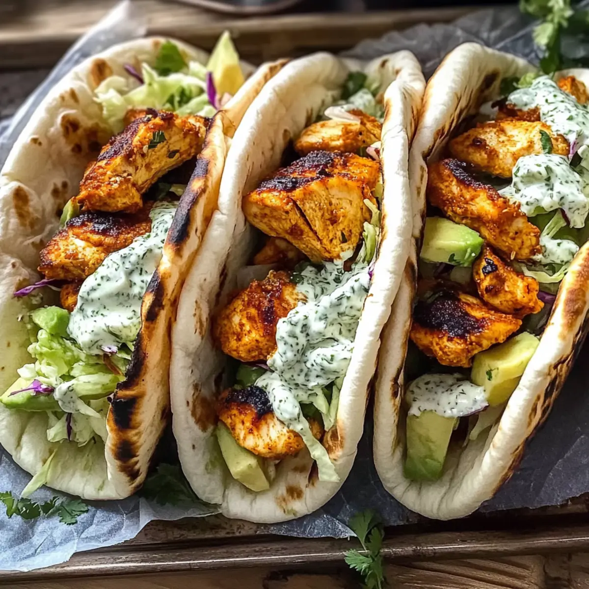 Zesty Tzatziki Sauce: This cool and creamy yogurt-based sauce beautifully complements the pitas, enhancing the herby slaw with its fresh cucumber and garlic notes.