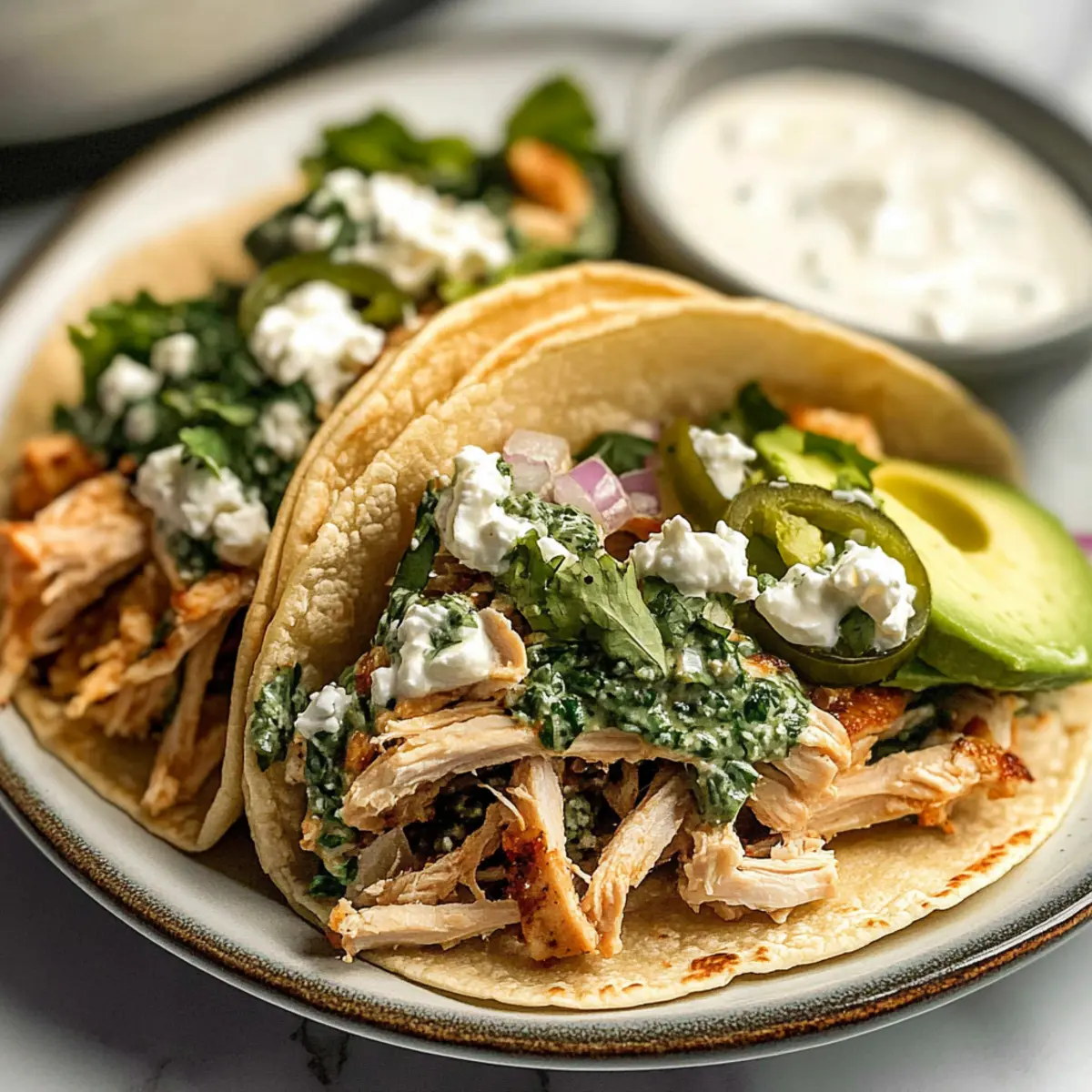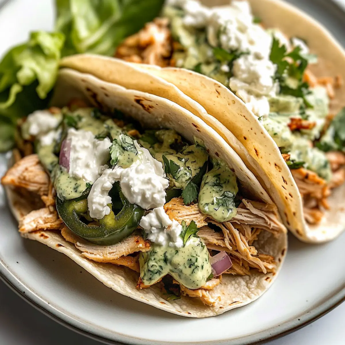 Savory Shredded Chicken Tacos with Creamy Chimichurri Sauce