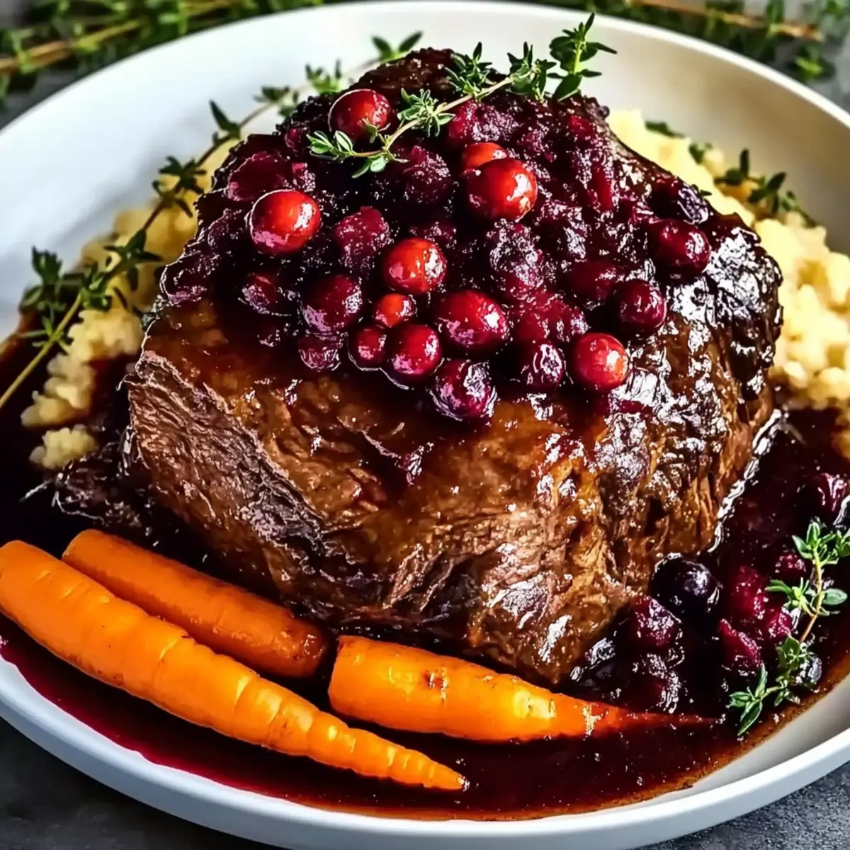 Slow-Braised Beef Roast with Cranberry Balsamic Glaze Magic