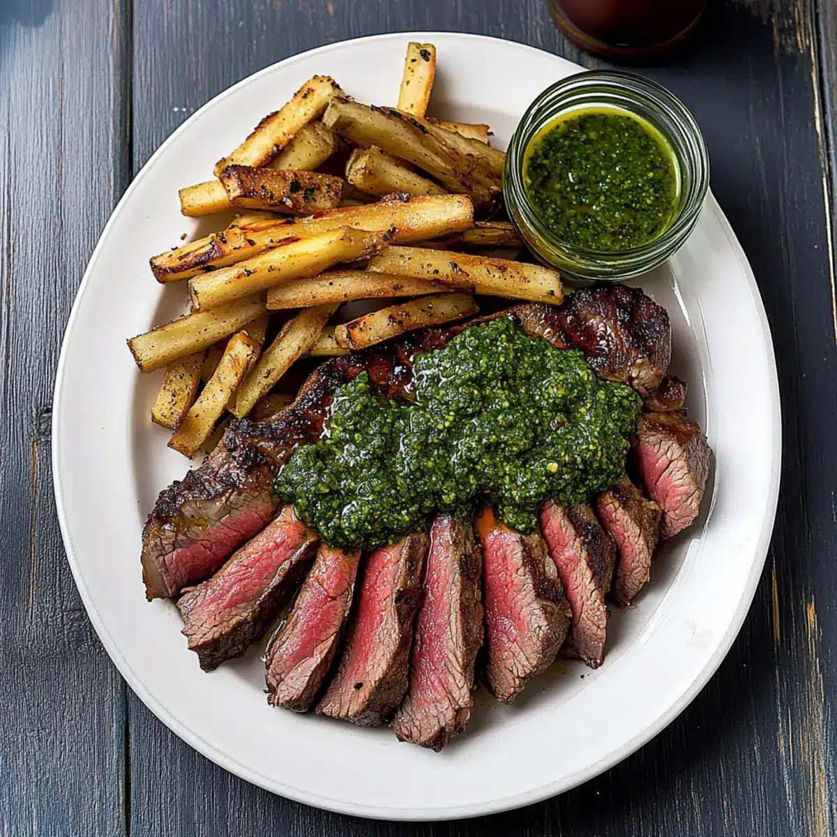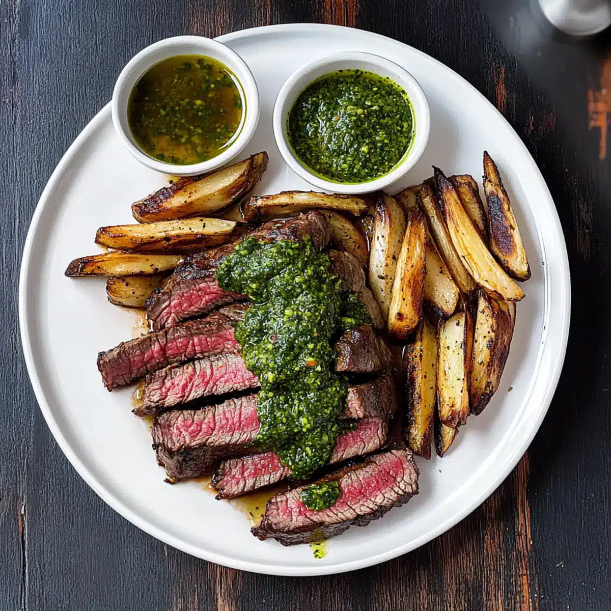 - Rest and Serve: Allow steaks to rest for 5-7 minutes before slicing and topping with chimichurri.