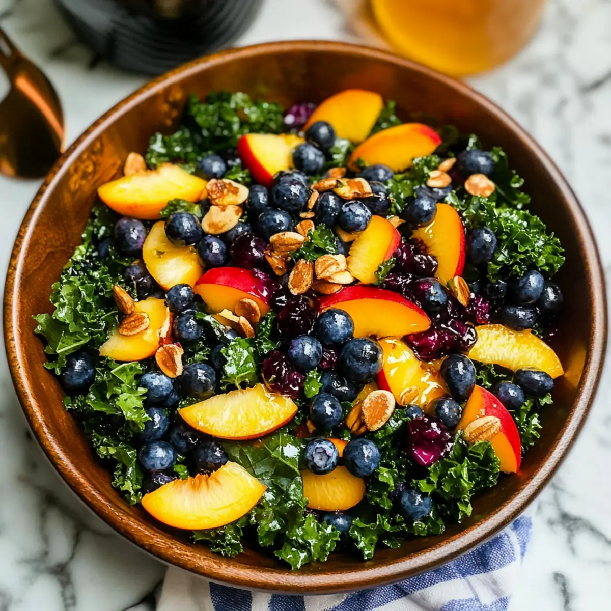 • Serve Fresh: Combine salad ingredients and dressing just before serving to maintain freshness and crunch in your Summer Peach Blueberry Kale Salad.