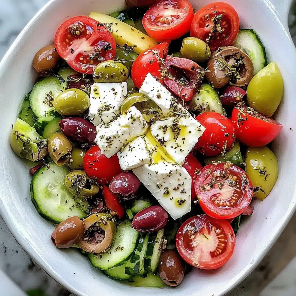 As I tossed together the vibrant ingredients of my Traditional Greek Salad, the sun-drenched flavors of the Mediterranean danced around me—it felt like a mini vacation right in my kitchen. Horiatiki, or the classic Greek salad, is a celebration of fresh, wholesome ingredients that effortlessly blend to create a dish that’s both simple and satisfying. With juicy tomatoes, crisp cucumbers, colorful bell peppers, and tangy feta, this salad is not just a feast for the eyes but also a fantastic way to elevate your healthy eating game. It’s quick to whip up, making it perfect for those busy weekdays or casual gatherings with friends. So, why not take a trip to Greece through your taste buds and enjoy this wonderfully fresh dish? What fresh twists will you add to your own version?