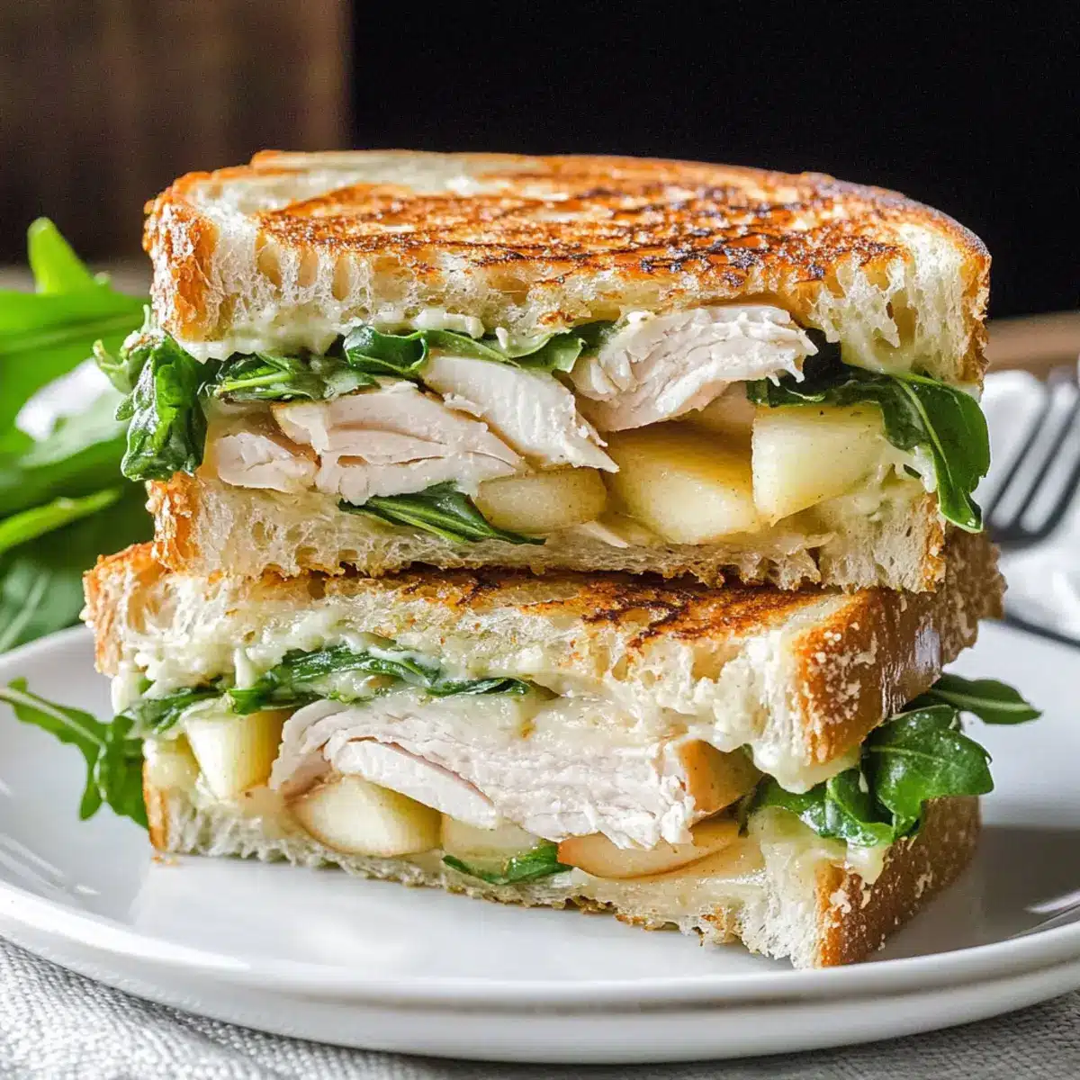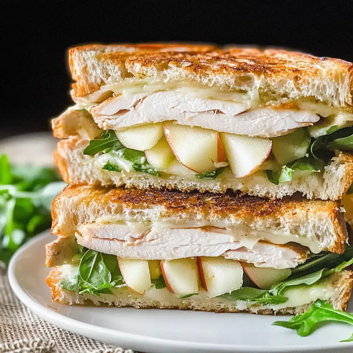 Layer the fillings generously by placing two slices of Brie cheese directly on top of the mayonnaise side of one piece of bread. Follow with three thin apple slices, a generous amount of sliced turkey, and a handful of fresh baby arugula. Then, add the remaining apple slices and top them with another two slices of Brie cheese for that irresistible melty goodness.