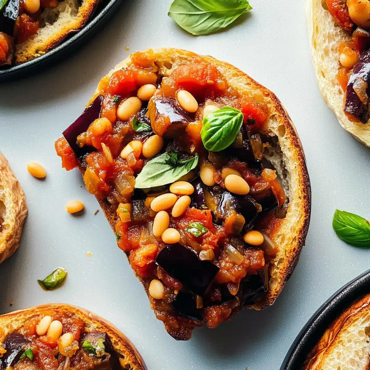 Herbed Quinoa: For a protein-packed, gluten-free option, serve caponata over fluffy herbed quinoa, which adds a nutty flavor while keeping the meal wholesome.